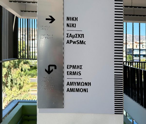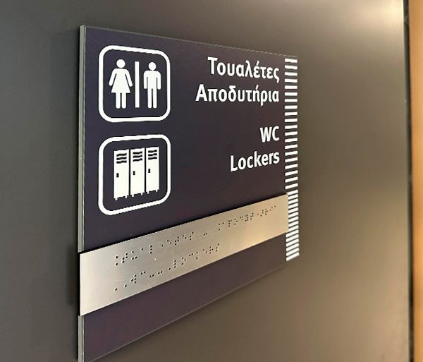 Η EUROSIGN καινοτομεί και αναλαμβάνει σημάνσεις και με πινακίδες BRAILLE για ΑΜΕΑ σύμφωνα με παγκόσμιες προδιαγραφές σε ειδικά υλικά φιλικά ως προς την αφή, κατάλληλα για τη χρήση από ανθρώπους με σοβαρά προβλήματα όρασης και τυφλούς.